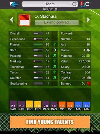 W Goal 2014 - Football Manager każdemu z Twoich graczy możesz przydzielić indywidualne ćwiczenia w celu polepszenia poszczególnych elementów technicznych oraz kondycyjnych. Oczywiście zawodnicy różnią się między sobą zaangażowaniem, dojrzałością oraz wyceną wartości rynkowej, która jest zależna od ich umiejętności.